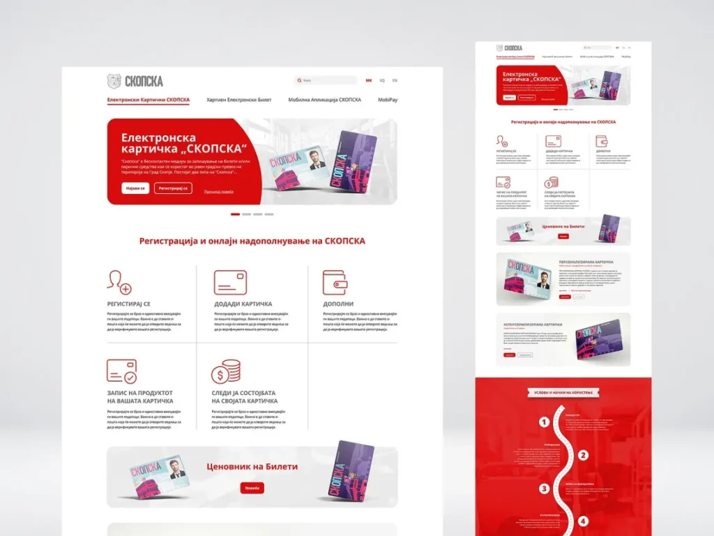 Linked to Skopje's Public Transportation website is the Skopska Card website, in which I also design the whole UI design.