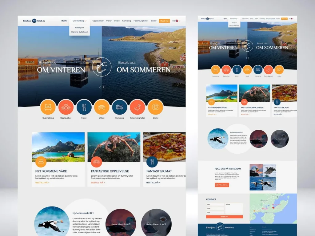Designed a responsive website for a hotel in Norway – highlights summer and winter experiences with bright visuals and easy navigation.
